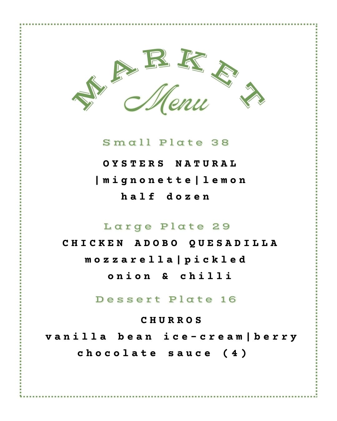 Seasonal menu, local & independent producers. Perfect to share